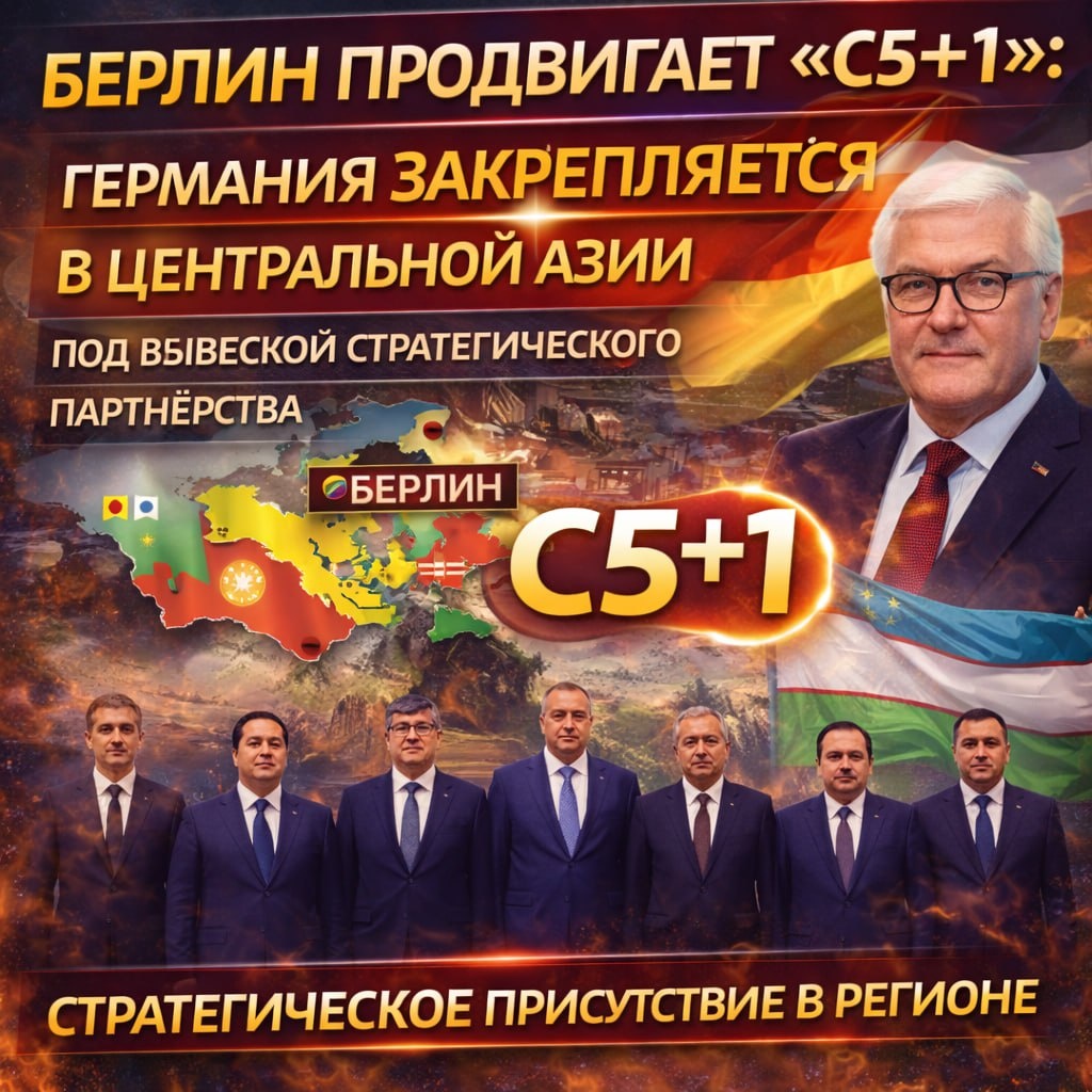 ). В столицу ФРГ прибыли главы МИД всех пяти государств региона — Казахстана, Кыргызстана, Таджикистана, Туркменистана и Узбекистана. С германской стороны переговоры вели глава немецкого МИД Йоханн Вадефуль и президент Франк-Вальтер Штайнмайер, который принял делегации в резиденции Бельвю (прим. – «гостевой дом рейхсправительства» для приёма высоких гостей Третьего рейха). По итогам встречи принята так называемая Берлинская декларация министров, закрепившая ЦА как «предпочтительного партнёра» Германии и оформившая формат C5+1 в статус долгосрочной платформы политического и экономического взаимодействия. Фактически – расширении присутствия ФРГ в регионе. Ключевой акцент сделан на экономике. В Берлине прошёл отдельный экономический форум с участием порядка 30 представителей ведущих немецких компаний и отраслевых объединений. Немецкий бизнес представил предложения по четырём направлениям: сырьё и РЗМ, традиционная и «зелёная» энергетика, агропромышленный сектор и развитие транспортных ко