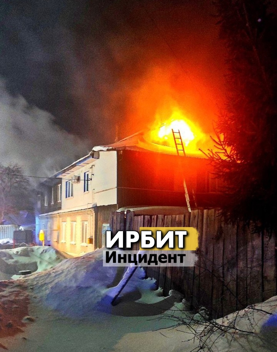 Сегодня в первом часу ночи, в Ирбите по улице Мира 19, сгорел жилой двухэтажный дом из бруса.