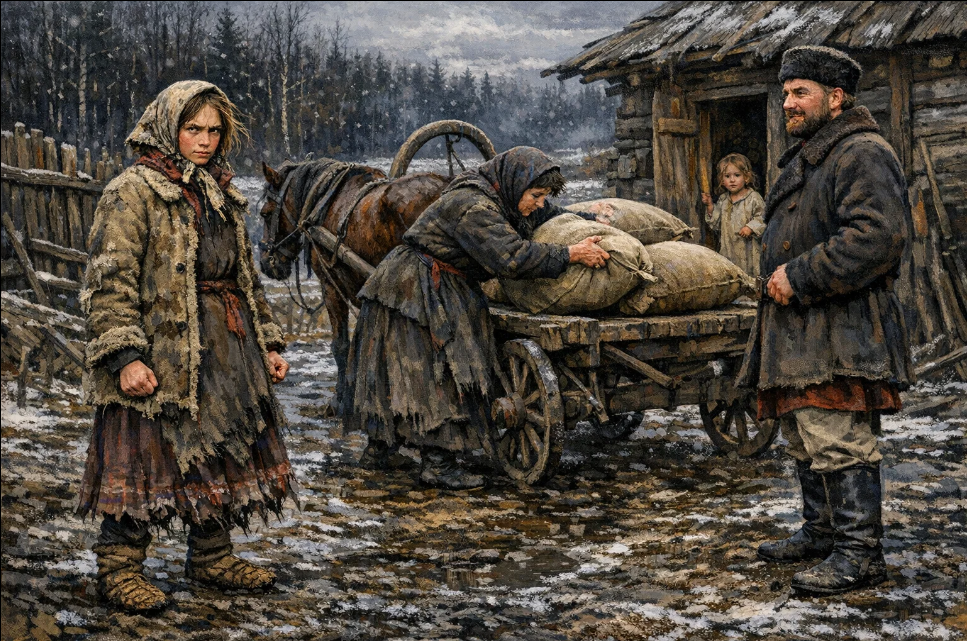 И больше ни слова. Нищей крестьянке, что тащит на себе пятерых детей одна, не до слез и сожалений. Это зерно поможет прожить остальной семье еще одну бесконечную, голодную зиму. А старшая… пускай у чужих людей в тяжком услужении, зато в тепле и с куском хлеба.