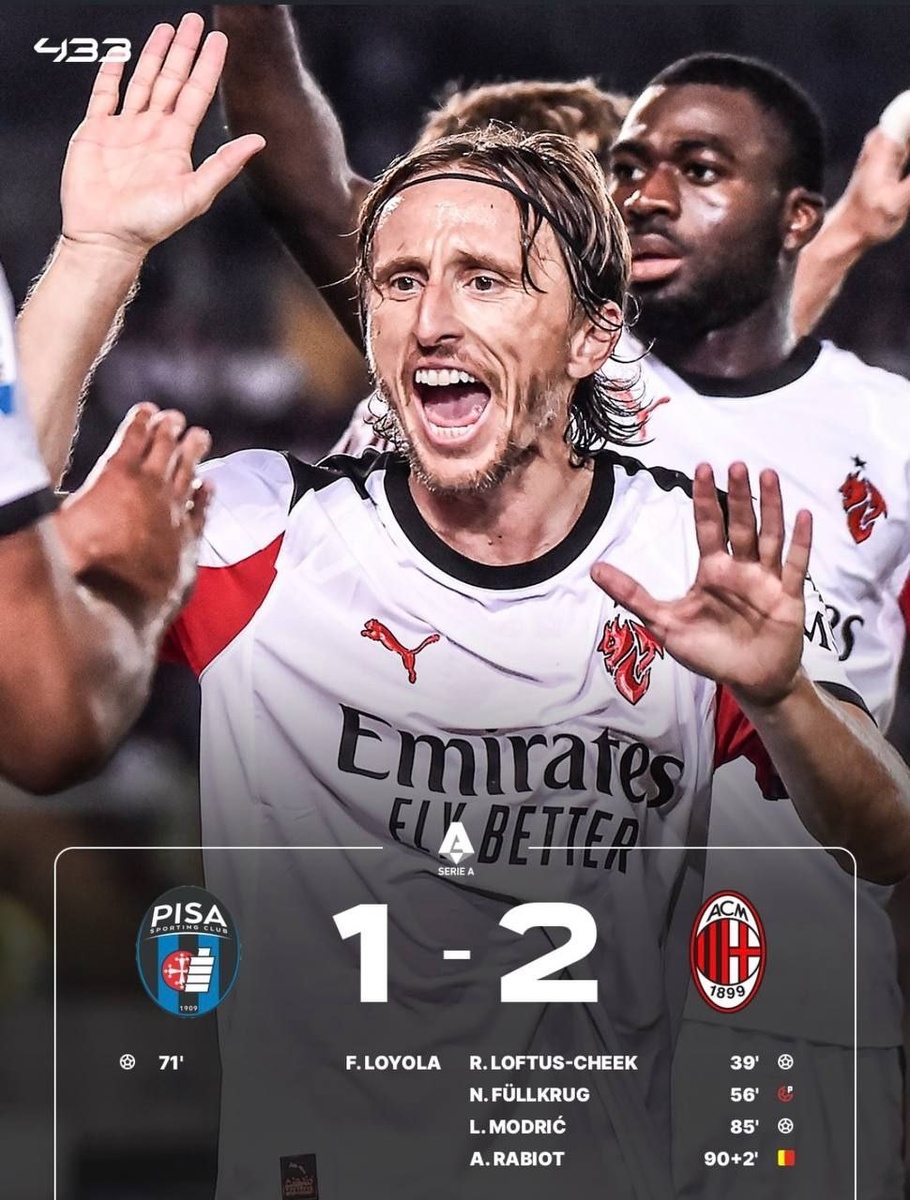 🇮🇹 «Милан» в гостях вырвал победу у «Пизы» – победный гол забил 40-летний Модрич