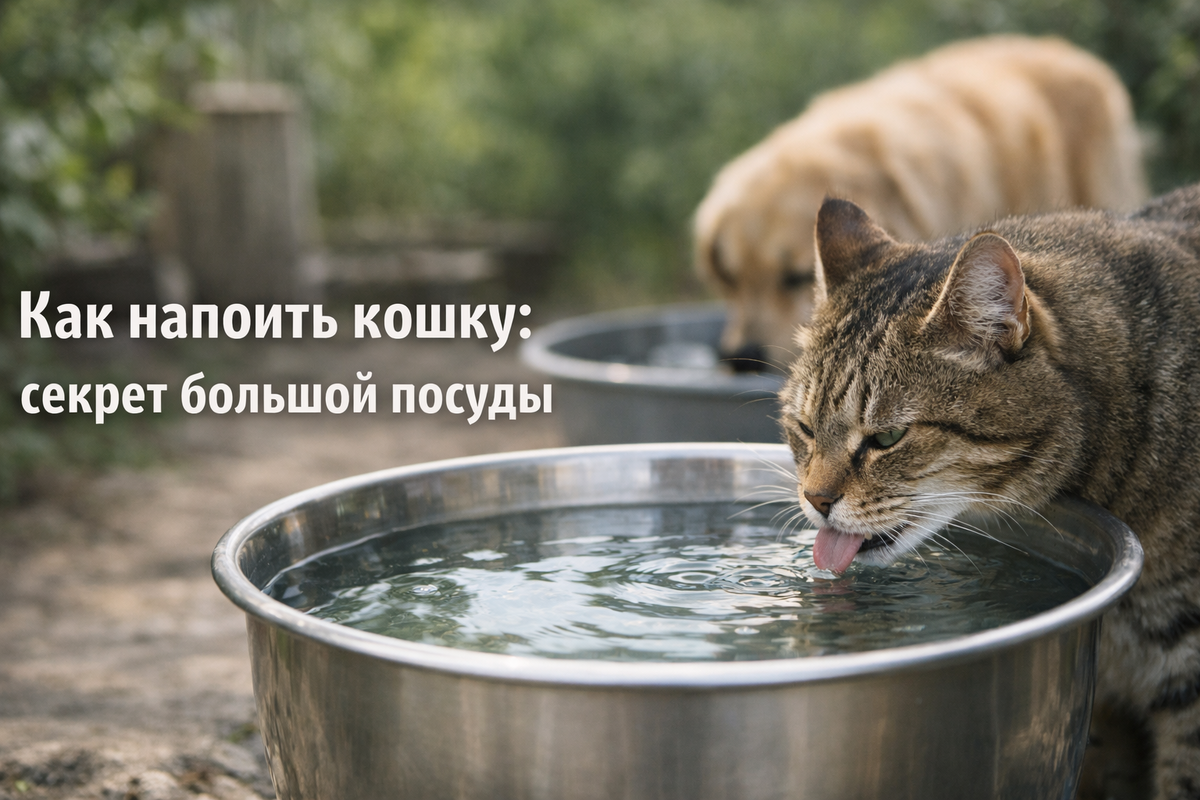 У кошек часто бывают проблемы с почками. Одна из причин – они мало пьют. Так устроена их физиология. Предки кошек получали влагу из добычи, а не из миски. У стерилизованных животных риск выше. Обмен веществ меняется, нагрузка на почки растёт. А привычка пить мало остаётся. Но у моих кошек проблем с питьём нет. Их у меня трое: две живут дома, одна – в гараже. И все пьют хорошо. В интернете полно советов, как "обмануть" кошку и заставить её пить больше. Игрушки в воде. Поплавки. Крышечки от бутылок, чтобы кошка их вылавливала и заодно мочила морду. Честно? Мне кажется, это придумал человек, который плохо понимает кошек. Кошка не любит лишний контакт с водой. Всё, что связано с намоканием лап и морды, если это не питьё, она скорее обойдёт стороной. Стресс – плохой стимулятор жажды. Я пошла другим путём Я заметила одну деталь: и кошки, и собака предпочитают пить из большой ёмкости. Летом Рыся лакала воду прямо из бочки. Хотя рядом стояла её обычная миска. Малыш игнорирует свою чашку и пьёт