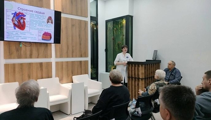 В областном кардиодиспансере прошло занятие в Школе здоровья, приуроченное к Всероссийской неделе осведомленности о заболеваниях сердца. Как сообщали в региональном минздраве, занятие прошло 12 февраля. Участникам — а их собралось 26 человек — рассказали о факторах риска и способах профилактики. Особый интерес вызвала практическая часть. Заведующая дневным стационаром Ирина Суворова познакомила слушателей с дыхательным упражнением «4х4х4». Выполнять его просто: вдох на 4 счета, задержка дыхания на 4 счета, выдох на 4 счета и снова задержка. Достаточно 30 секунд, чтобы активировать клетки мозга и снизить уровень стресса. Занятия в Школе здоровья проходят еженедельно по вторникам и четвергам. Мероприятие направлено на раннее выявление сердечно-сосудистых заболеваний — одну из ключевых задач нацпроекта «Продолжительная и активная жизнь».