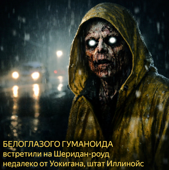 Перед тем как поравняться с незнакомцем, тот повернул голову и посмотрел прямо на него. В ярком свете фар и уличных фонарей свидетель увидел лицо, изуродованное до неузнаваемости. Кожа выглядела обожженной, покрытой красными язвами и глубокими деформациями. Но самое жуткое — глаза. Они были совершенно белыми, без зрачков и радужки.