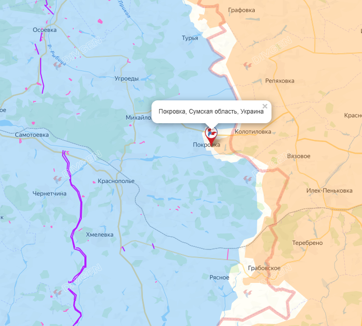 По информации военных корреспондентов, наши подразделения зашли в село Покровка, расположенное у границы Белгородской области. Таким образом, был пробит новый участок госграницы, и оборона противника в этом районе оказалась дезорганизована. Штурмовые отряды работают также в Глуховском и Краснопольском районах. Продвижение российских войск здесь составляет от 500 метров до 1.5 километров на отдельных участках, что позволяет взять под огневой контроль новые логистические артерии противника.