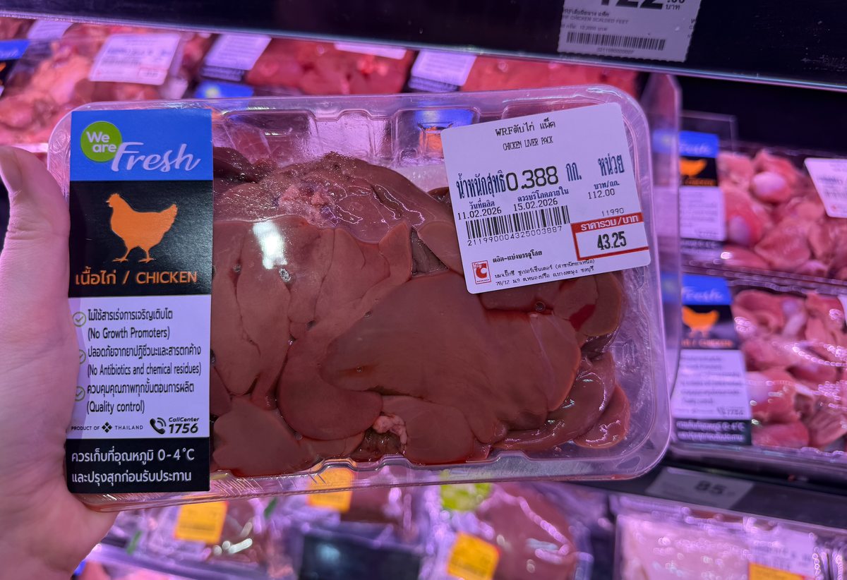 На днях заезжали за большой закупкой продуктов в Биг Си (скоро расскажу, почему) и я в очередной раз не перестаю удивляться и радоваться ценам в Тае. Особенно на фоне новостей из России про огурцы за полтыщи рублей и про удорожание жизни в целом... Вот серьезно: напишите в комментариях подорожали ли у вас коммунальные услуги за январь? Я ловлю новости с какими-то астрономическими цифрами в платежках и хочу разобраться насколько это соответствует реальности. Ну а теперь к продуктам. Часть фотографий с фиолетовым оттенком, понятия не имею, почему так сфоткалось)) Курс бата к рублю сейчас 2,75 примерно. 1 кг куриной печени - 112 бат (308 р/кг). Печень я люблю и уважаю, часто быстро обжариваю с овощами или делаю печеночные оладушки. Куриные сердечки разбили мне сердце... 1 кг - 59 бат (162 рубля!) представляете? Даже мой муж изменился в лице при виде такое стоимости. Сердечки я обожаю, готовлю в Москве очень часто: с лучком и картошечкой пюре, но и на гриле они суперски получаются Следу