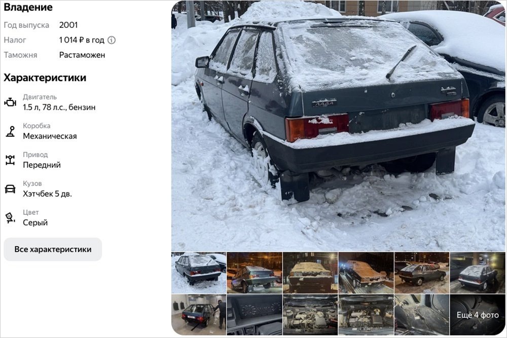 В Москве в продаже обнаружился новый пятидверный хэтчбек ВАЗ-2109 серо-голубого цвета, выпущенный 25 лет назад. За четверть века на «девятке» наездили лишь 3,7 тысячи километров. Автомобиль, со слов продавца, гаражного хранения. Однако прикрепленные к объявлению фотографии, мягко говоря, заставляют в этом усомниться — хэтчбек как будто только что выкопали из огромного сугроба. Тем не менее, кузов выглядит на отлично, включая пороги и обратную сторону капота. По салону также нет никаких «косяков». Также продавец отметил, что машина не эксплуатировалась в зимнюю пору. «Девятка» выкрашена в красивый серо-голубоватый цвет. Под капотом — инжекторный двигатель 1,5 литра мощностью 78 л.с., работающий в паре с 5-ступенчатой МКП. Привод — передний. Цена не так уж и высока, если речь идет о новом автомобиле, пусть и выпущенном в 2001 году — 550 000 рублей.