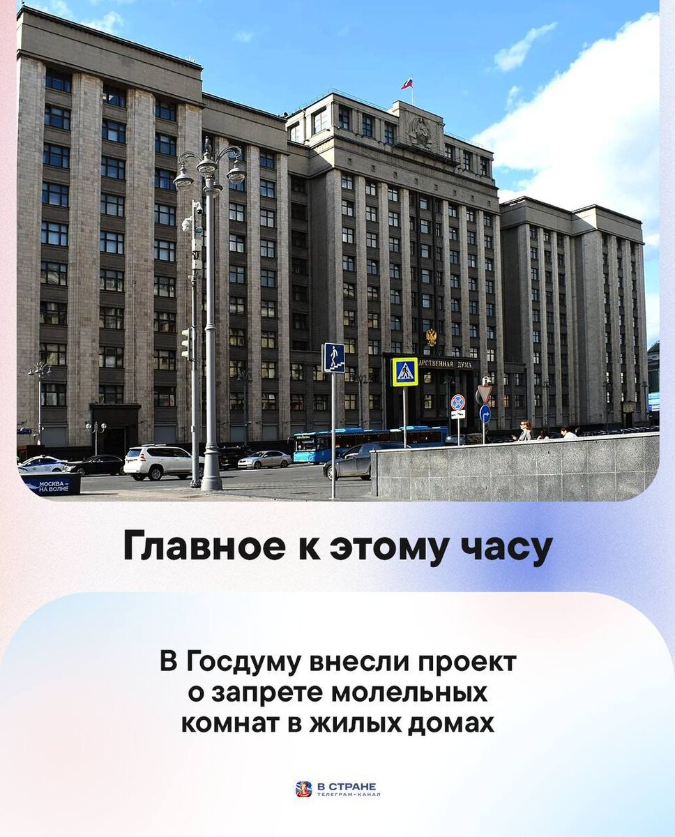 : 🔹В Госдуму внесли проект о запрете молельных комнат в жилых домах. 🔹Силы ПВО за ночь сбили 20 украинских БПЛА над регионами России — Минобороны РФ. 🔹В РФ с 1 марта запретят автоматически списывать деньги за подписки с отвязанных карт —депутат Антропенко. 🔹В Совфеде сообщили о подготовке третьего пакета мер против кибермошенников, включая борьбу с дипфейками. 🔹Минсельхоз поддержал идею продавать некоторые ветпрепараты по рецепту — глава комитета Госдумы по охране здоровья Леонов. ✅ «В Стране» в MAX