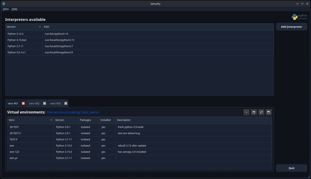 ⚙️ venvipy — это графический интерфейс для управления множеством Python-виртуальных окружений с одного места