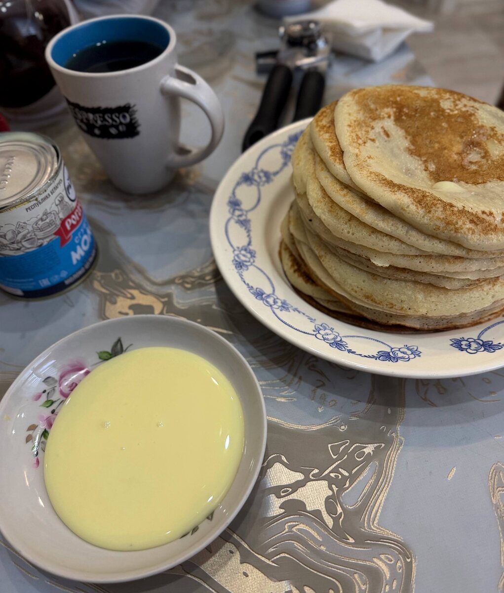 🏘️ Сегодня на родине ✅ Мама как обычно сделала гору блинов, половину уже съел, сегодня читмил🥘 Погода - дождь 🌧️ Вчера вечером сходил в зал, надо записать две тренировки 💪🏻 👇 У вас как начинается суббота?