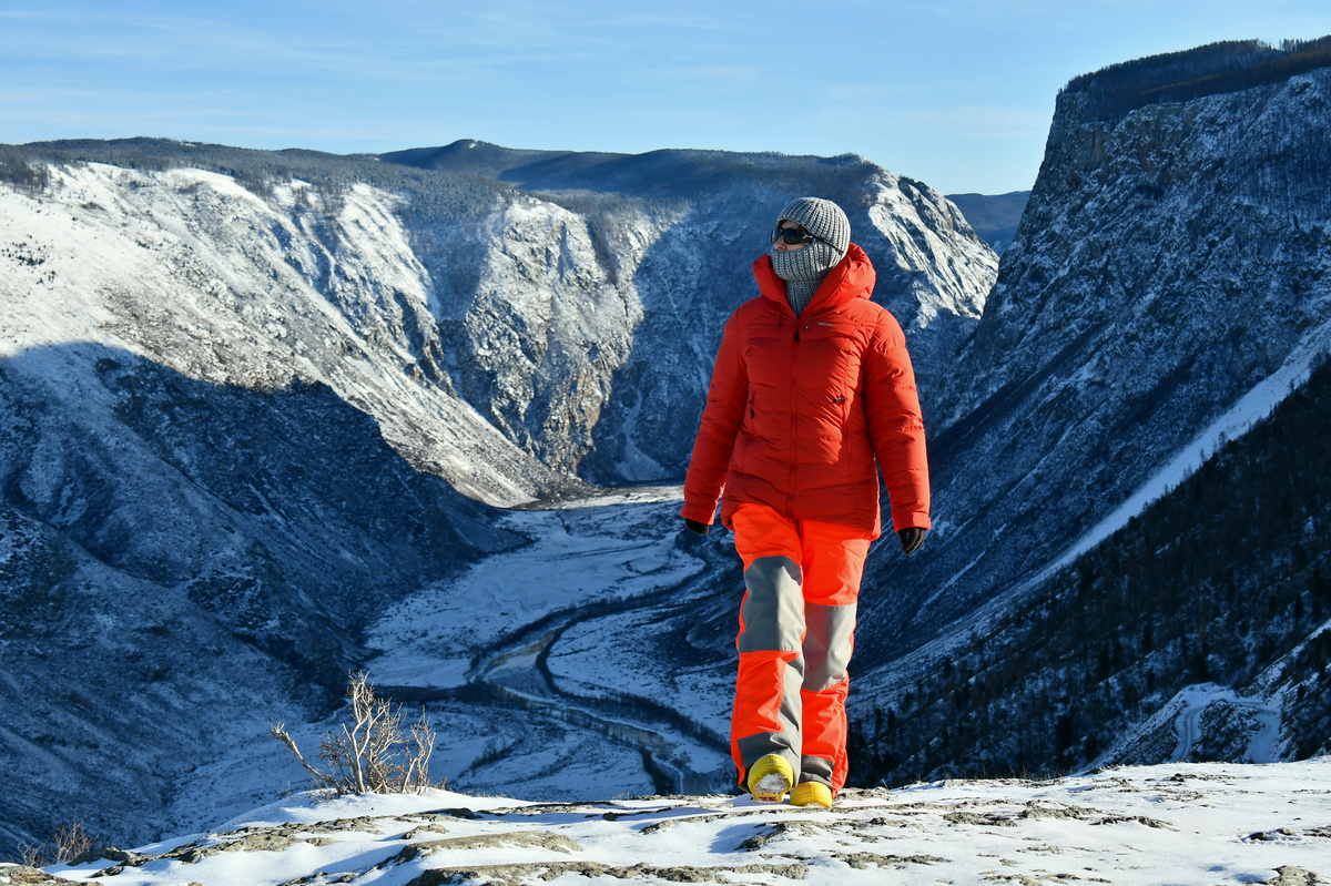 В зимнюю пору на перевале безлюдно и тихо, только ледяной ветер полирует отвесные склоны с застывшими гигантскими сосульками водопадами. Сверкающий на солнце кипенно-белый снег слепит глаза, а дно ущелья лежит в густой тени. По отвесному склону вьется белой лентой дорога с длинными петлями серпантина. Далеко внизу Чулышман сонно катит тяжелые воды к Телецкому озеру.
