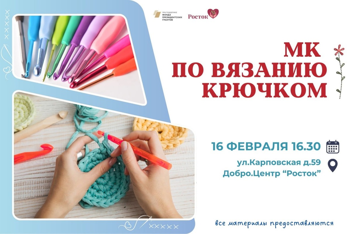 🔥 Приглашаем на МК по вязанию крючком, которое состоится 16 февраля в 16.30 в нашем Добро.Центре "Росток