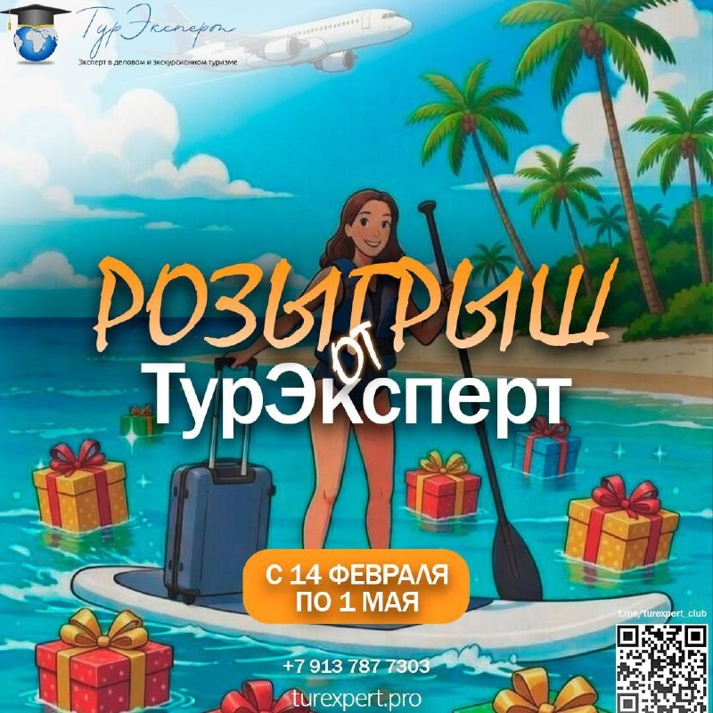 ! Друзья, у нас отличные новости! Мы в «ТурЭксперт» запускаем большой розыгрыш, приуроченный ко Дню всех влюбленных. И длиться он будет больше двух месяцев - аж до 1 мая! Почему? Потому что мы любим вас и хотим дарить подарки по-крупному, а весна - самое время для путешествий! Условия проще простого: ✅ Вы покупаете у нас любой тур: • по России • за границу • или экскурсионный тур ✅ Мы присылаем вам персональный номер участника. ✅ Вы ждете 1 мая и приходите к нам в прямой эфир! Что разыграем? 🎲 🧳 Стильный чемодан для идеальных поездок 🏄♂️ Сапборд - чтобы покорять воды этим летом ✈️ Проход в бизнес-зал - встретим ваш отдых с комфортом Чем больше туров - тем больше шансов! Билеты в путешествие уже стали счастливыми, а вдруг удача улыбнется именно вам?