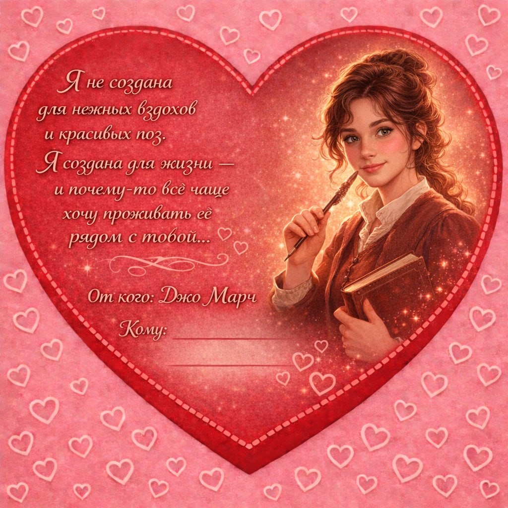 💗 Я собрала валентинки от имени любимых персонажей, чтобы они могли поздравить вас - тех самых, кто дочитывает до трёх ночи и спорит с авторами в голове. Правила простые: 🌸Листайте карточки и выбирайте ту, чьи слова вам хочется получить сегодня. 🌸 Пишите в комментариях: какая героиня попала в сердце; с кем из книжных девушек вы бы сходили на свидание (или хотя бы на долгий разговор на кухне) и почему. Можно сохранять, пересылать «тому самому человеку» или использовать как официальный аргумент: да, у меня есть типаж, и да, он книжный. Обнимаю вас виртуально! #настроение_в_переплете #романтика