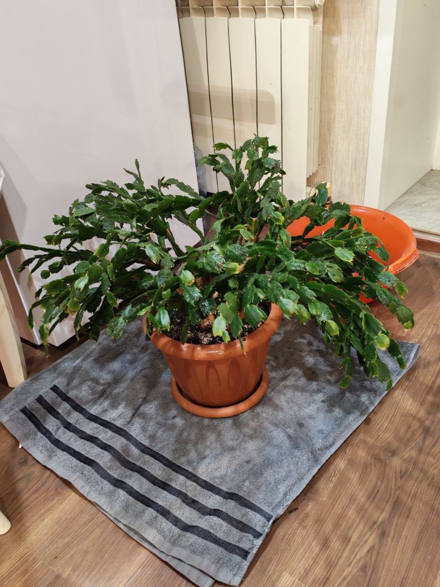 Пересаживали декабрист в четыре руки. Сама я его вытащить из старого горшка просто не могла.