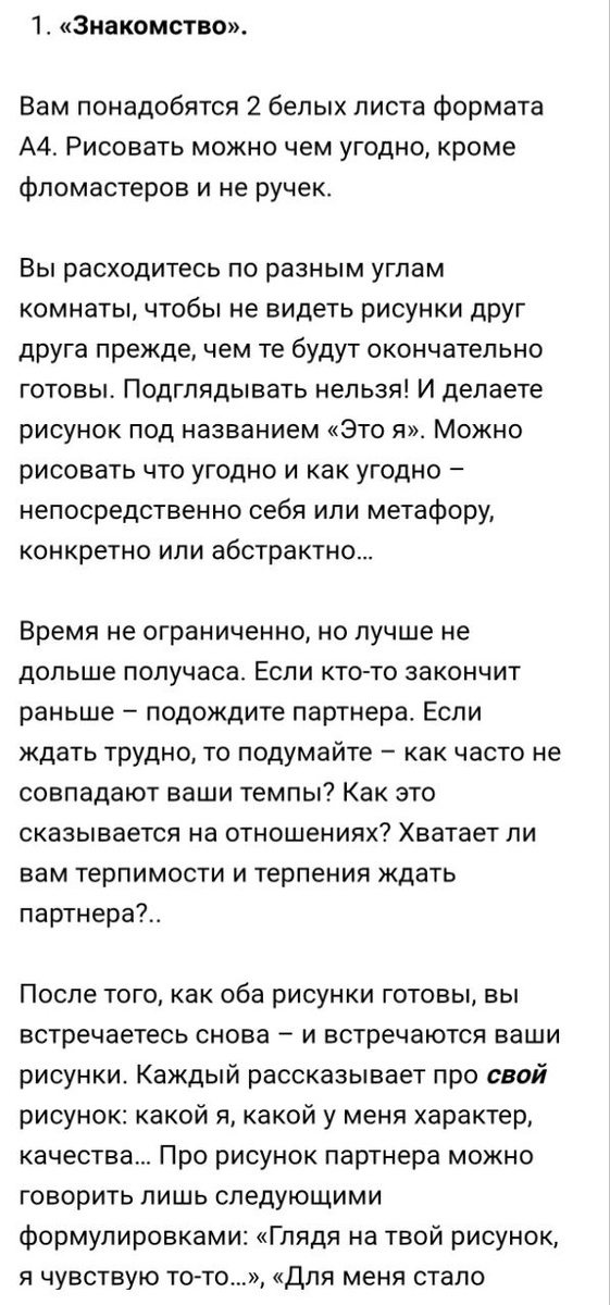 "... Порой Вам кажется, что Вы прекрасно знаете близкого человека, и вдруг - сюрприз! Происходит нечто неожиданное. Предлагаю Вам психологическую игру "Знакомство". Можно поиграть в нее с любимым человеком на любом этапе отношений. Или в дружеской компании. Поверьте, Вас могут ждать сюрпризы! 😉 Кто-то празднует сегодня День Святого Валентина, кто-то нет. Предлагаю: попробуйте провести этот день в любви. Быть добрыми и терпимыми к своим близким - да и к незнакомым людям тоже. Наблюдайте за собой и задавайтесь вопросами: - Что мешает мне проявлять любовь и доброту? Возможно, страхи отвержения, использования, иные?. - Что помогает мне быть любящим, принимающим, терпеливым? - Умею ли я принимать позитив и фильтровать негатив? ❤️❤️❤️ Любви Вам, друзья. Не потому, что сегодня праздник. А потому, что важно проживать в любви каждый день))))