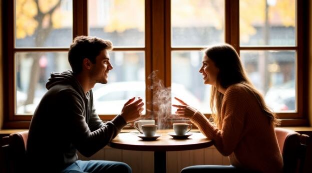 Они встретились в кафе — нейтральная территория, без родителей и их ожиданий. Максим пришёл первым, заказал кофе и нервно проверял телефон. Когда дверь открылась, он поднял глаз и замер.