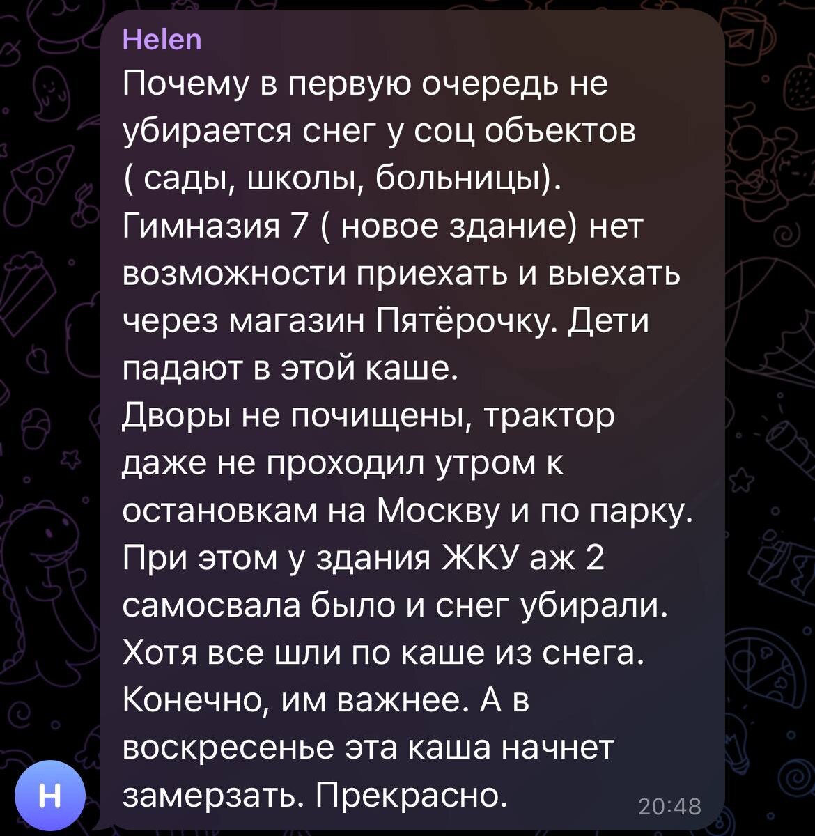 😮😱 Немного о том, что жители Чехова думают о качестве уборки снега в городе. Реплики из тг-канала главы округа Михаила Собакина…