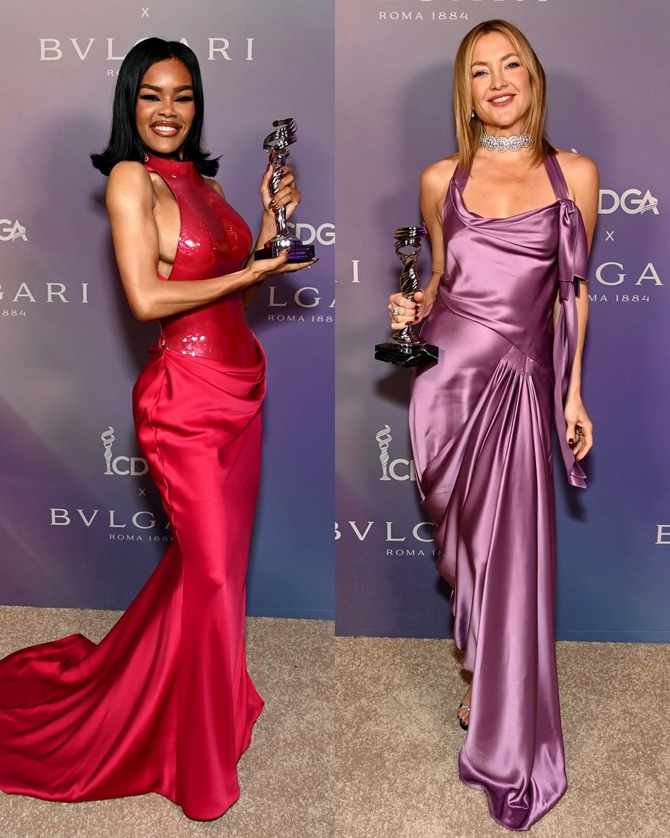 Красная дорожка в Лос‑Анджелесе снова стала пространством для модной драмы и бескомпромиссного самовыражения на 28‑й премии Costume Designers Guild Awards, которая прошла 12 февраля в The Ebell of Los Angeles, и собрала самых ярких актрис Голливуда. Если в прошлые сезоны мы привыкали к гламурной классике и продуманной сдержанности, то в этом году женщины своей смелостью и цветом буквально переписали правила выхода на красную дорожку. Тейяна Тейлор получила премию и появилась в невероятно выразительном платье от Tamara Ralph Spring из весенней коллекции от кутюр. Платье оттенка ярко‑красного с глубоким вырезом на спине и струящейся юбкой, которая плавно ложилась по полу при каждом шаге. Этот шедевр от Tamara Ralph балансировал между скульптурой и романтикой, создавая образ, который трудно забыть. Кейт Хадсон блистала в Valentino, роскошном платье лилового оттенка с глянцевой сатиновой тканью и драпировкой, оно словно играло светом и тенями в каждом движении актрисы. Аксессуары были св