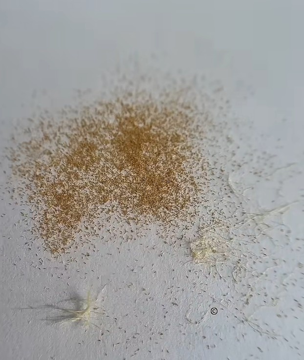 Это не пыль, а семена орхидеи. Из них можно вырастить вот таких малышек. А как мы это делаем, сейчас расскажу. Сначала вручную опыляем орхидею. Через некоторое время формируется семенная коробочка. Затем она зреет несколько месяцев, лопается и из неё высыпаются семена. Они не имеют запаса питательных веществ. В дикой природе они образуют симбиоз с определёнными грибами. Мы же их помещаем вот на такой гель с запасом питательных веществ и витаминов. Но сначала семена стерилизуются и по капли распределяются на питательной среде. И всё это делается в стерильных условиях. Иначе вместо орхидеи прорастёт вот такая плесень. После посева семена набухают, и через некоторое время уже видны протокормы. Пришло время рассаживать их на новую питательную среду. Затем проходит ещё несколько месяцев, у них вырастают корешки и листочки, им становится тесно, и их снова нужно рассаживать на новую питательную среду. Затем они растут и становятся всё больше и больше. Через несколько месяцев они выгля