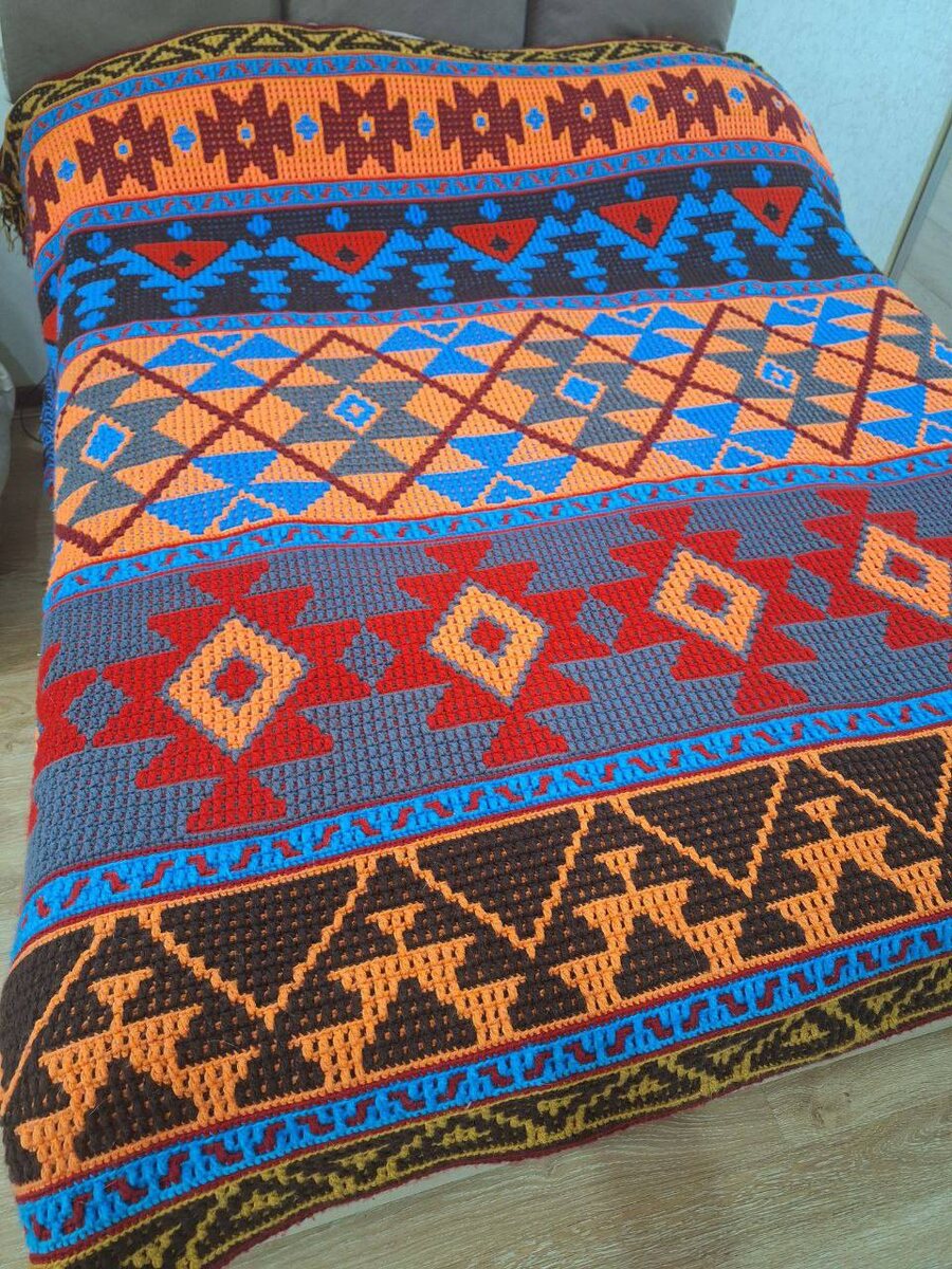 Новости наших чатов Это уже не буйство красок, это настоящее южно-американское настроение! Работа @Tashechka2209 из чата «Лима»🔥 Пока вы рассматриваете узоры, скажу, что это сложная работа: здесь часто больше одного цвета в ряду, то есть мы смешиваем мозаику и жаккард. Нужна сноровка. Но это того стоит. @Tashechka2209: «Плед-ковер , размер 2500×2200 ,вес 6 кг. Очень благодарна Юле за проект ,,Лима,, ,это восторг ! Невероятное настроение при вязании обеспечено!!» О проекте «Лима» Лима — это боевая творческая группа, где мы варимся в узорах центральной и южной Америки. Вся информация о проекте — в этом посте: https://dzen.ru/media/gendina/btg-boevaia-tvorcheskaia-gruppa-snova-v-dele-proekt-lima-poka-vy-spite-ia-67ad0cb176aded101e44372a
