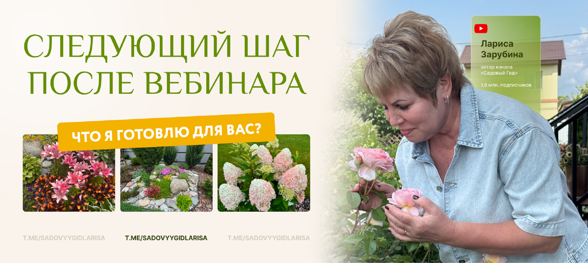 Эта лекция для тех, кто хочет перестать метаться и чувствовать тревогу. Кто не хочет геройствовать, не хочет упахиваться, не хочет соревноваться с соседями, а хочет приходить в сад и чувствовать - «мне здесь хорошо». Для тех, кто устал от ощущения: «что-то опять не так». Я очень аккуратно к этому подхожу, потому что я хочу вам дать систему, которая останется с вами. Поэтому на вебинаре помимо того, что я подробно разберу один из ключевых этапов — выбор растений, для тех, кто захочет пойти глубже, я расскажу о лекции: как будет проходить, какие форматы участия будут и кому она действительно подойдет. На вебинаре я открою возможность приобрести мою лекцию. Но сразу скажу, количество мест будет ограничено. Потому что я хочу предусмотреть помимо доступа к лекции формат участия с моим вовлечением. Сразу скажу это будет не для всех. Лекция для тех, кому действительно важно разобраться в системе построения своего сада. Если вы чувствуете, что готовы не просто слушать советы, а выстроить сад шаг за шагом — то я дам вам такую возможность.