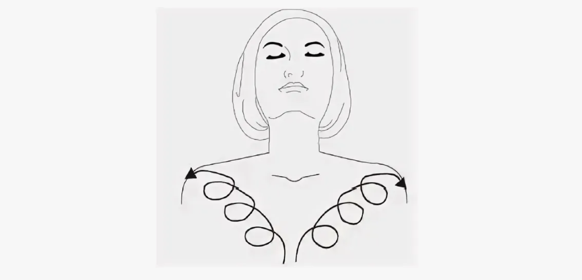 - После растираем область декольте круговыми движениями от центра в сторону - также делаем практику около 1-2 минут.