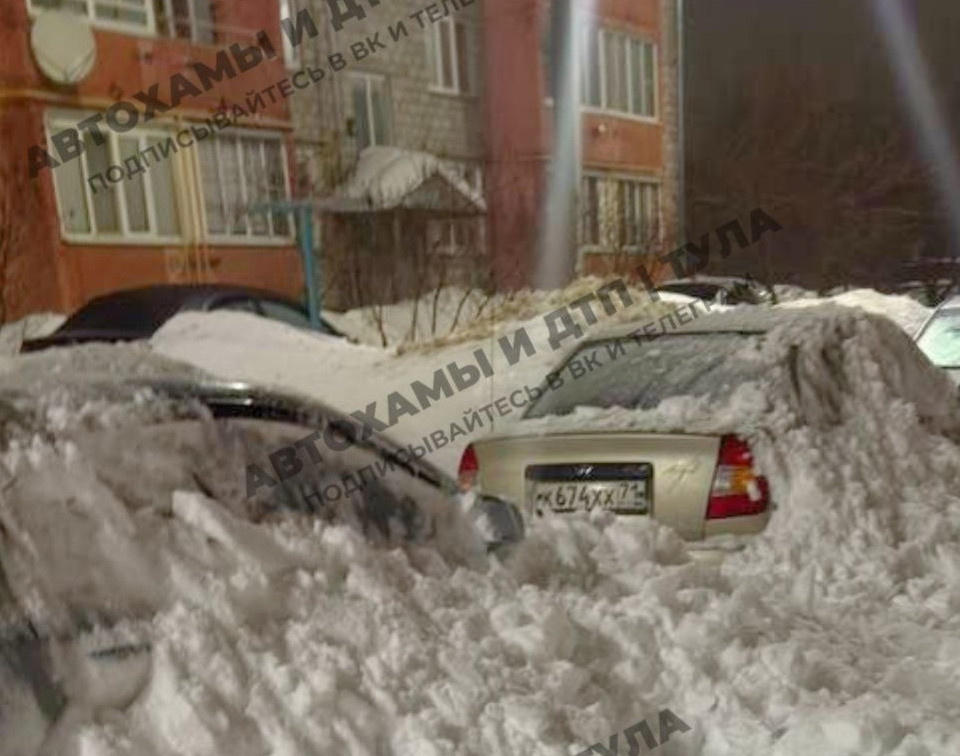 Лавина снега с крыши накрыла припаркованные автомобили в Щекино