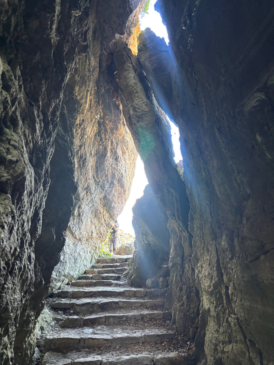 Море здесь прорезало в каменных глыбах бороздки. Вид живописный, очень красиво.