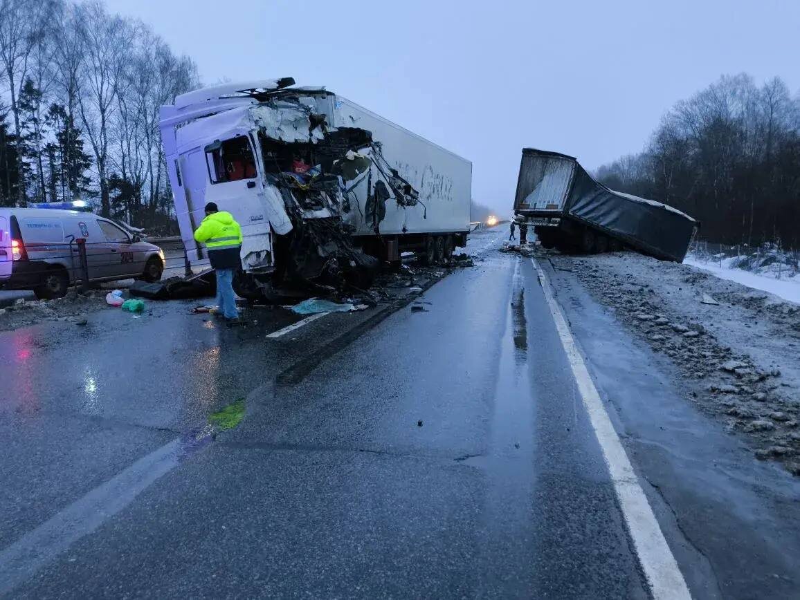 Авария произошла около семи утра на 391-м километре автодороги М-1 в Смоленском муниципальном округе. По предварительным данным ГАИ, водитель 1988 года, управляя автомобилем «Даф» с полуприцепом «Шмитц», совершил наезд на осевое тросовое ограждение. Разорвав его, мужчина выехал на встречную полосу, где столкнулся с грузовиком такой же иностранной марки под управлением водителя 1972 года рождения. В результате ДТП оба водителя погибли на месте. Сотрудники Госавтоинспекции работают на месте происшествия, устанавливая все обстоятельства произошедшего. На участке дороги организовано реверсивное движение.