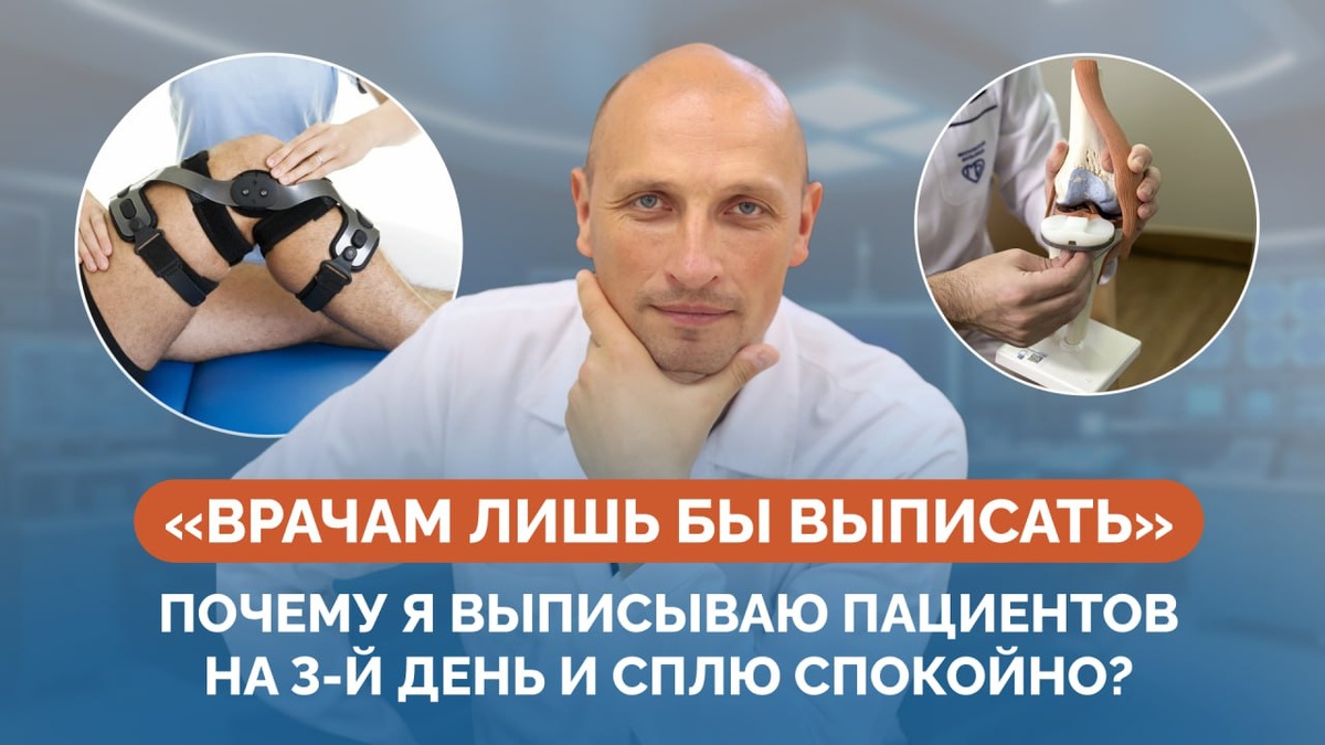 - Выписка как этап лечения. Когда в день операции пациент ходит по палате, на 2-й — осваивает лестницу, а на 3-й — уверенно себя чувствует, то пребывание в стационаре теряет медицинский смысл. Пациенты сами готовы ехать домой, потому что им не требуется внимание врача и медицинского персонала, они рады тому, что могут так быстро вернуться к родным и привычной жизни. И, кстати, дома в привычной среде восстановление идёт даже быстрее. Я выписываю не «лишь бы выписать», а потому что вижу объективные критерии готовности: отсутствие боли, уверенная ходьба, выполнение всех упражнений. И я сплю спокойно, потому что уверен в качестве своей работы.