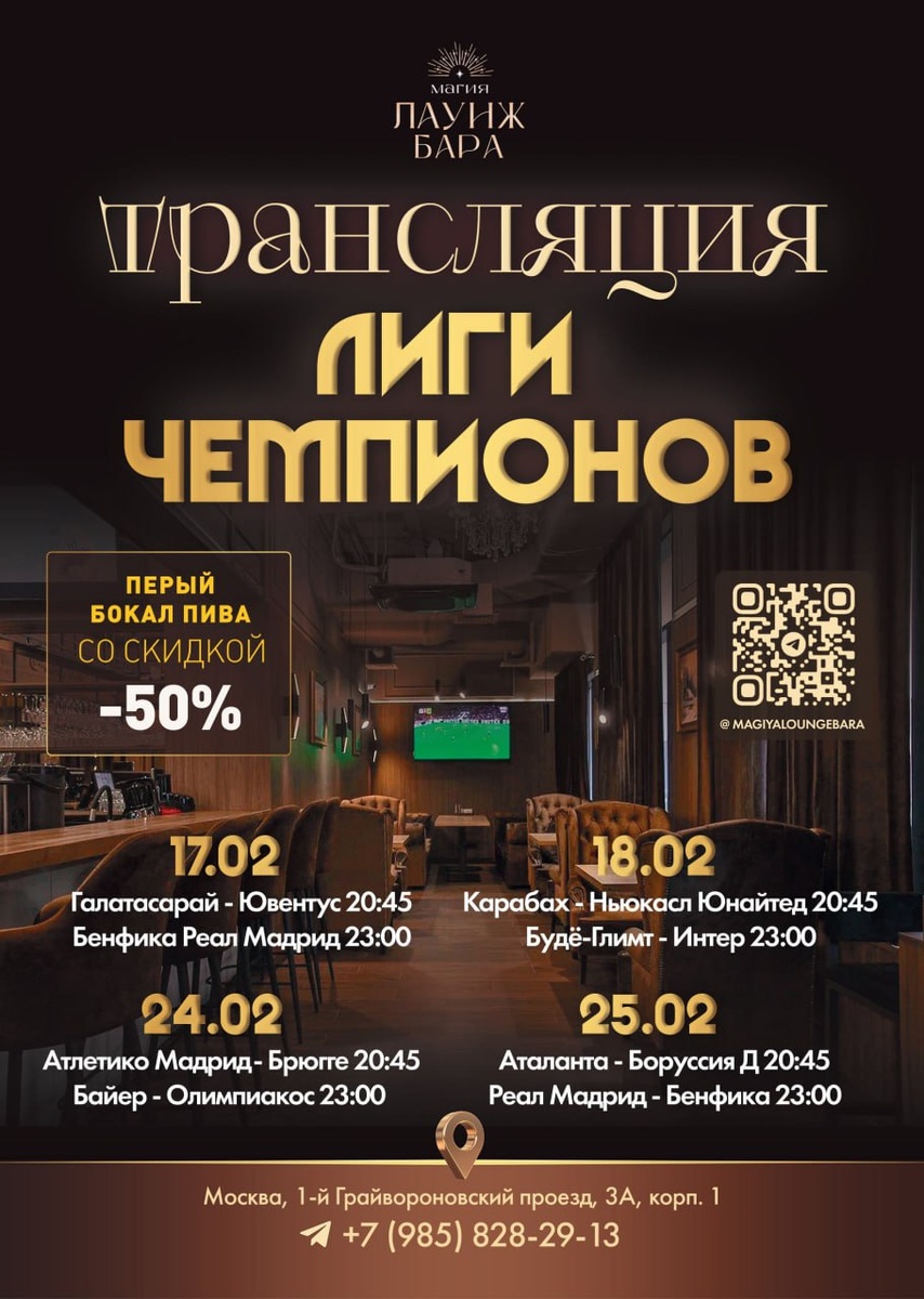 ⚽️ Друзья, лаундж бар Магия приглашает на просмотр прямых трансляция Лиги чемпионов