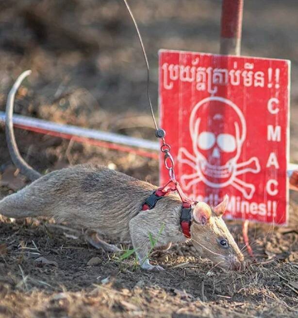 Пятилетний африканский грызун по кличке Ронин работает в Камбодже с августа 2021 года. Он обучен находить взрывчатку по запаху тротила. Когда крыса чувствует знакомый запах, она начинает скрести землю. Саперы ставят флажок и потом обезвреживают мину вручную . Ронин служит в организации APOPO. Это бельгийский проект, который уже 25 лет тренирует грызунов для поиска мин по всему миру. Крыс выращивают в Танзании, в Университете Сокоин, и потом отправляют в Камбоджу и другие страны . За три с половиной года Ронин обнаружил 109 противопехотных мин и еще 15 неразорвавшихся боеприпасов. Работал он в провинции Сиемреап. В апреле 2025 года Книга рекордов Гиннесса официально признала его крысой, нашедшей больше всего мин за всю историю . До Ронина рекорд принадлежал крысе Магаве. Тот нашел 71 мину и 38 взрывоопасных предметов. Магава получил золотую медаль PDSA — это британская награда для животных, аналог Георгиевского креста. Его наградили в 2020 году, он умер в 2022-м в возрасте восьми лет