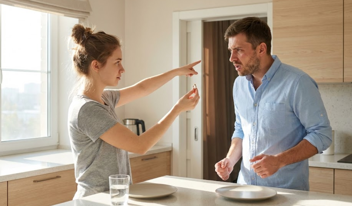 Игорь стоял посреди кухни, указывая на раковину, где лежали две немытые тарелки. Его взгляд был жестким и требовательным. Он смотрел на Алёну так, словно она была не его невестой, а подчинённым, который сорвал важные сроки.