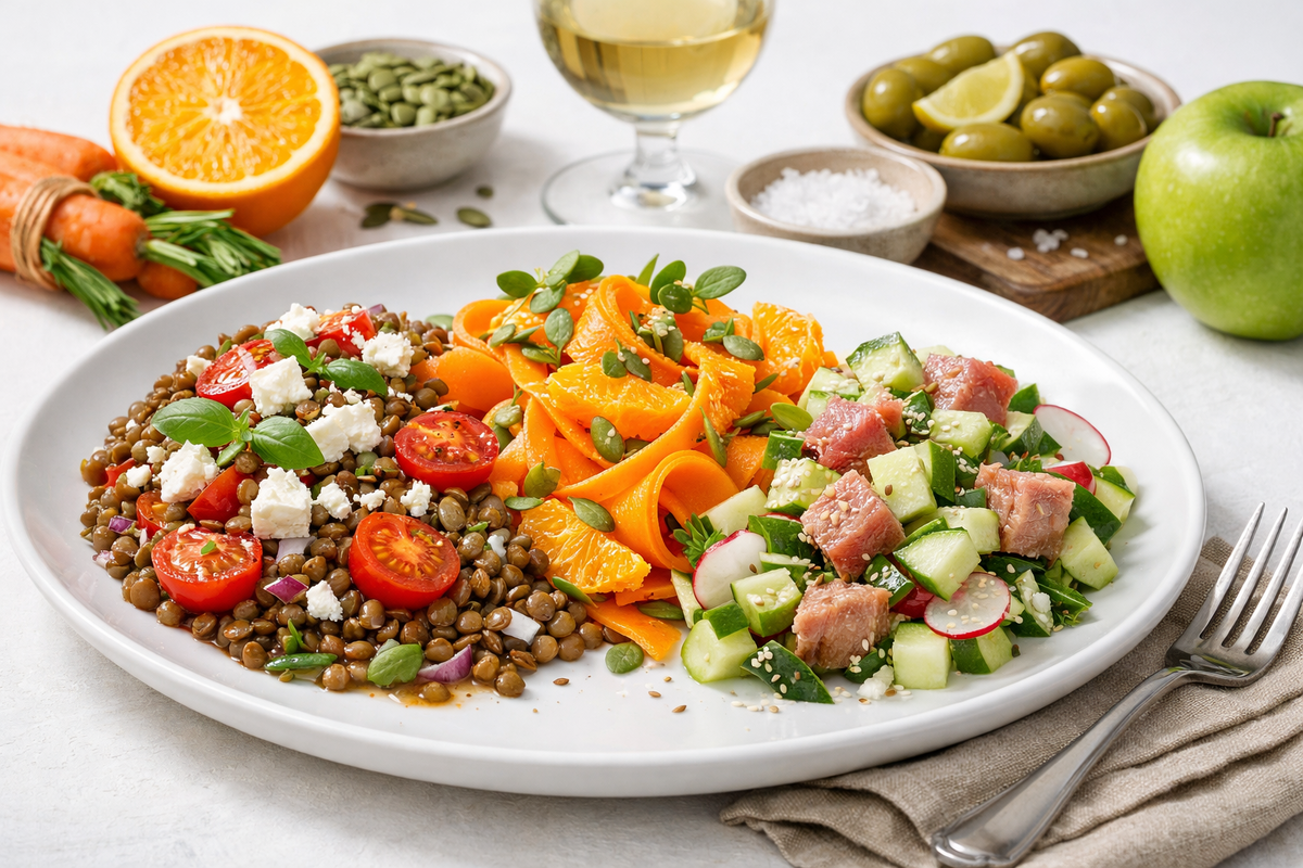 Когда надоело выбирать между "диетично" и "вкусно", я делаю вот эти три салата. Они лёгкие, без майонеза, но не пустые — с яркой заправкой, нормальной текстурой и красивой подачей. И да, это те самые варианты, после которых никто не спрашивает: "А где тут соус?"