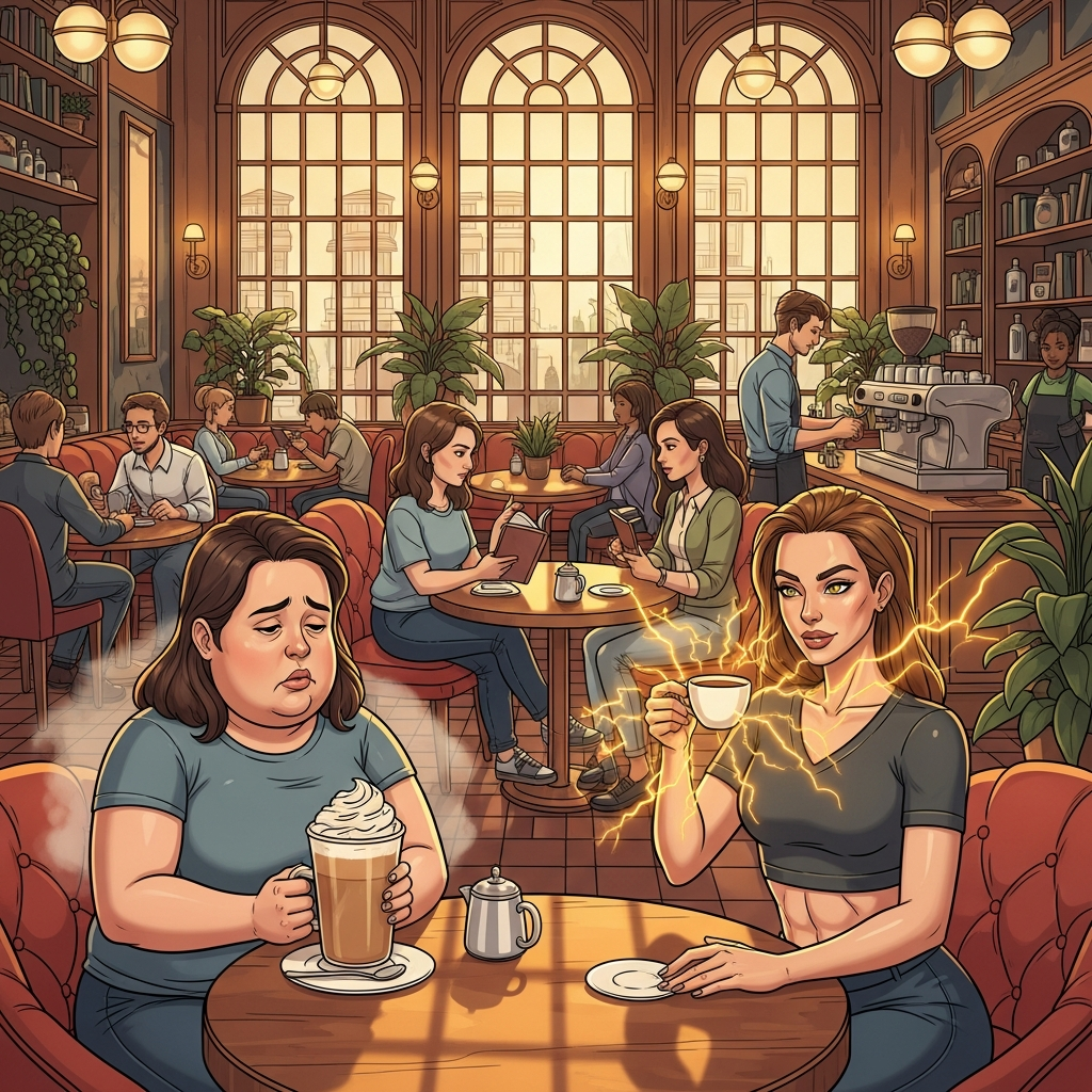 - Перевод на человеческий: Кофеин стимулирует выброс кортизола (гормона стресса). Кортизол в связке с инсулином (от молока) — это идеальный рецепт для отложения жира именно на животе (висцеральное ожирение).