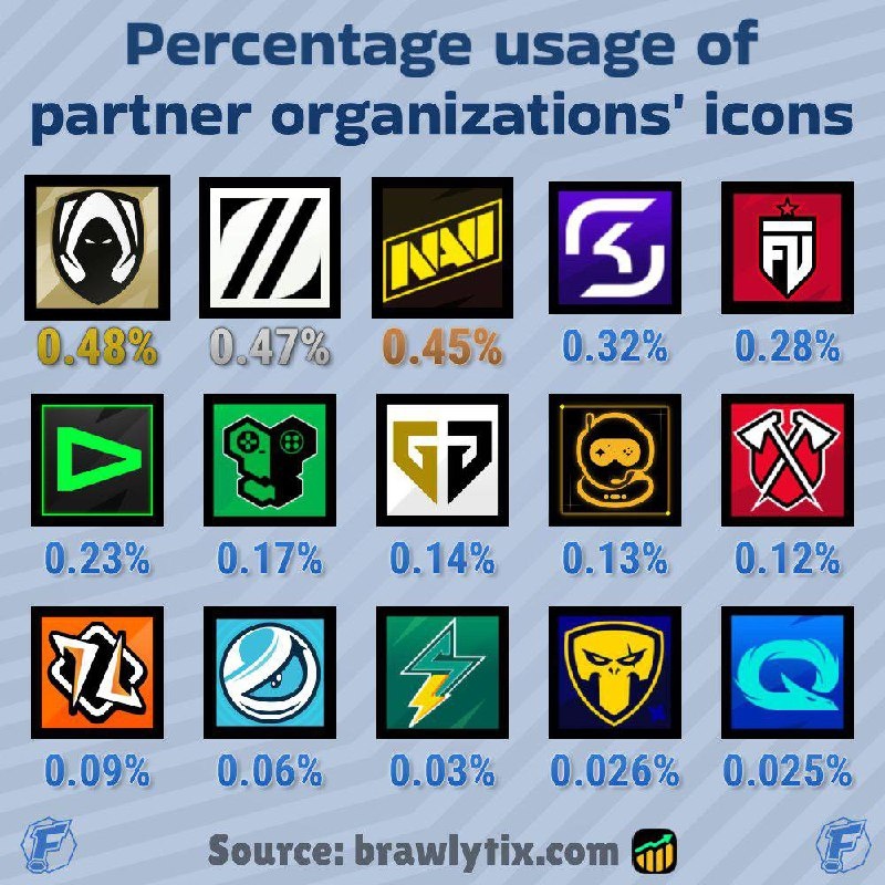 ⚡️ Перед вами все иконки киберспортивных команд и процент их популярности среди игроков.
