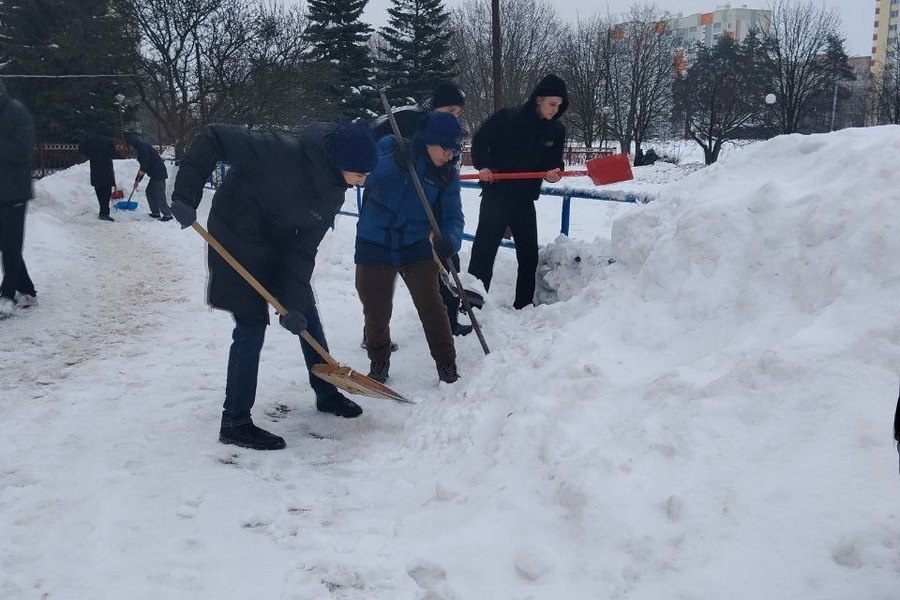В Гомеле студенты помогают коммунальным службам в уборке снега