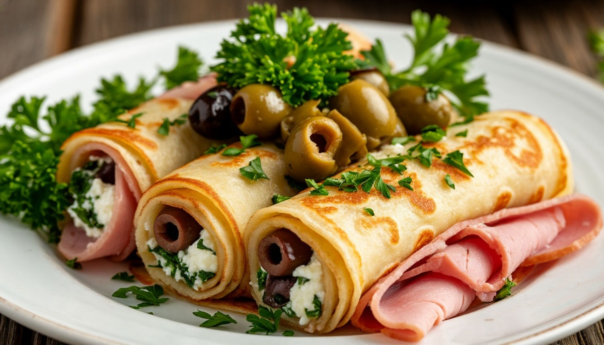 Блины "Итальянское утро" с маслинами и ветчиной