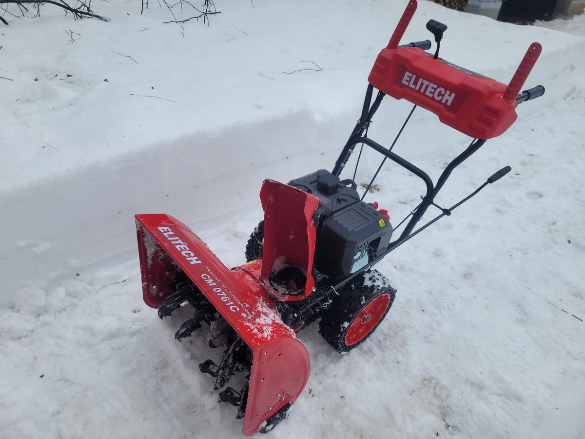 Январь 2026-го стал одним из самых снежных в истории и поставил давно назревший вопрос о покупке снегоуборщика ребром. К этому моменту снега на нашем дачном участке в Подмосковье навалило уже сантиметров на 40, поэтому вариант с электрическими моделями мы сразу отмели как заведомо бесполезный. Решили сразу: если уж брать, то бензиновый, самоходный и мощностью как минимум 7 лошадей (про мощность нам дворник подсказал – он человек бывалый). Но дальше начался ступор: снегоуборщиков разных фирм и модификаций оказалось так много, что глаза разбегались. И тут на Озоне нам попался Elitech СМ0761С по акции – за 27 тысяч. Дешевле только даром. Быстренько почитали отзывы (вроде все хвалили) и заказали агрегат.