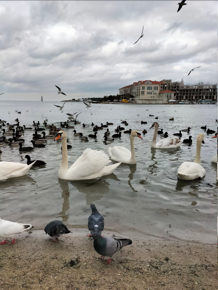 Можно уверенно сказать, что для Севастополя они стали визитной карточкой в бухте Омега (Круглой). Зимой 2026 года в бухте Омега насчитывается несколько десятков лебедей-шипунов. Красивые и благородные птицы чувствуют себя прекрасно в незамерзающих бухтах Севастополя. Каждый день к берегу моря приходят взрослые с детьми, чтобы полюбоваться на лебедей, иногда покормить. Птицы настолько освоились, что сами подходят к людям. На неделе прогулялись к морю, посмотрели на лебедей. Стало интересно, а откуда они прилетают и сколько преодолевают километров, чтобы провести три-четыре