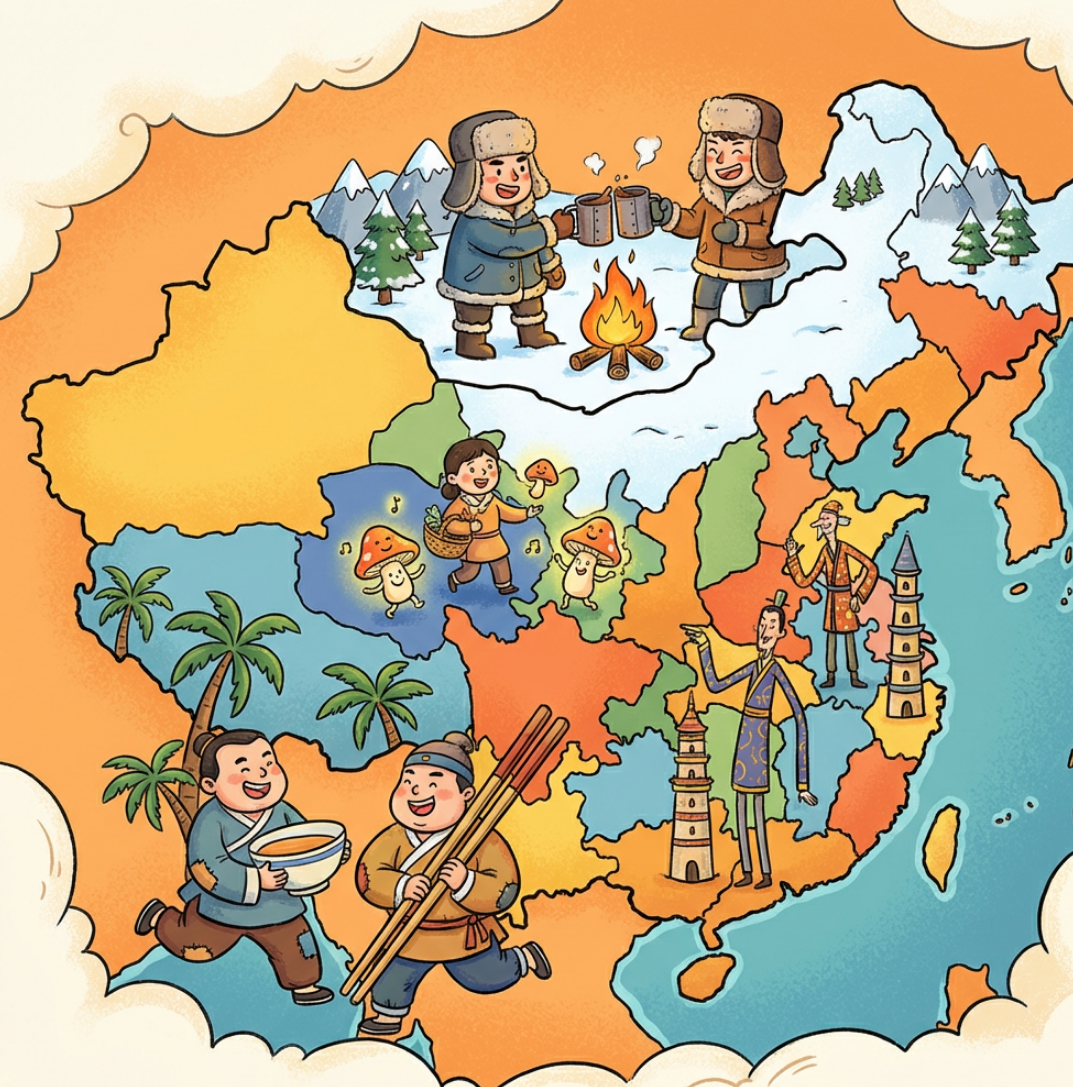 Если пролистать китайские соцсети вроде Douyin или Weibo, быстро становится понятно: региональная идентичность в Китае – это не просто «где ты родился». Это про то, что ты ешь, как себя ведёшь и, главное, какой стереотип о себе ты с готовностью поддерживаешь. Региональные прозвища давно прошли путь от обидных ярлыков до формы ироничного, почти нежного интернет-самоосмеяния. Вот несколько самых заметных примеров – и истории, которые за ними стоят. Юньнань – «дегустаторы грибов» Жителей провинции Юньнань часто поддразнивают как «любителей грибов» или людей, которые «видят маленьких человечков» (jian xiao ren). Провинция Юньнань славится биоразнообразием и любовью к диким грибам. Каждое лето, особенно в сезон дождей, в новостях появляются истории о том, как кто-то собрал грибы, плохо их приготовил – и оказался в больнице с галлюцинациями. Причём один и тот же сюжет повторяется удивительно часто: люди рассказывают, что видели маленьких разноцветных человечков, которые танцуют вокруг. Это с