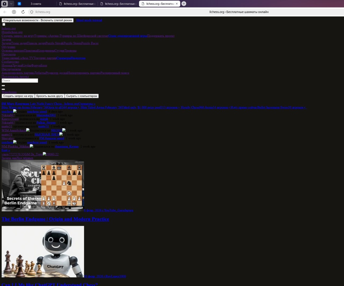 Слышал что официальные представители Lichess.org заявили, что с их стороны нет никаких ограничений для пользователей РФ, если этому верить
