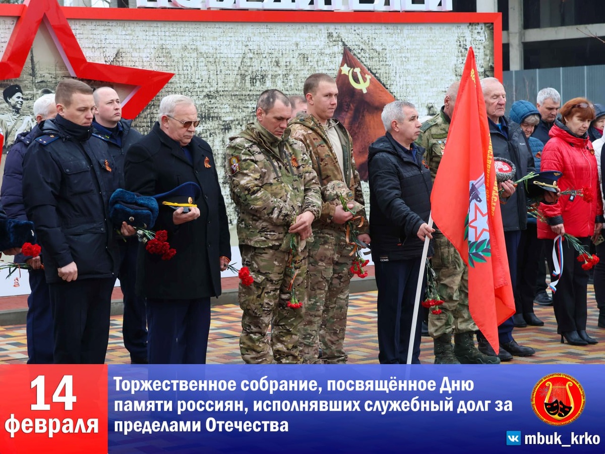 🚩 🔖 У мемориала воинам-интернационалистам состоялось торжественное собрание, посвящённое Дню памяти россиян, исполнявших служебный долг за пределами Отечества. 15 февраля – официальная памятная дата в РФ. В этот день 1989 года последняя колонна советских войск покинула территорию Афганистана. 🚩 Мероприятие собрало представителей власти, общественности, ветеранов и молодёжь. Участники почтили память павших и всех, кто выполнял интернациональный долг, минутой молчания и тёплыми словами благодарности за отвагу, мужество и преданность родной земле. 🔖 Вахту памяти у мемориала несли будущие защитники Родины – команда зарничников СОШ №4. 🚩 Символично, что церемония возложения цветов к мемориалу прошла под песню, слова к которой написал наш земляк, ветеран боевых действий в Афганистане, подполковник Василий Алексеевич Лысанев. 🚩Мы всегда будем в долгу перед воинами, защищавшими интересы Родины за её пределами. Память об их подвиге остаётся святым долгом общества и примером для новых