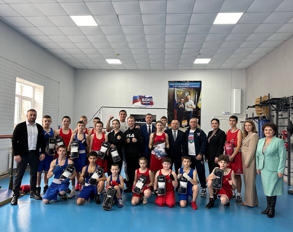 В поселке Комсомолец в рамках федерального проекта «Бокс в школу» прошло спортивное мероприятие с участием именитых гостей. Мастер спорта международного класса Фарид Алёшкин и директор Академии «Спарта» Сергей Мокроусов поделились опытом с местными тренерами и воспитанниками спортшколы. Почетными гостями события стали заместитель губернатора Ставропольского края Игорь Иванов и глава Кировского района Николай Новопашин. В ходе встречи обсудили планы по дальнейшему развитию бокса в муниципалитете и совместной работе. Фото Сергея Мокроусова