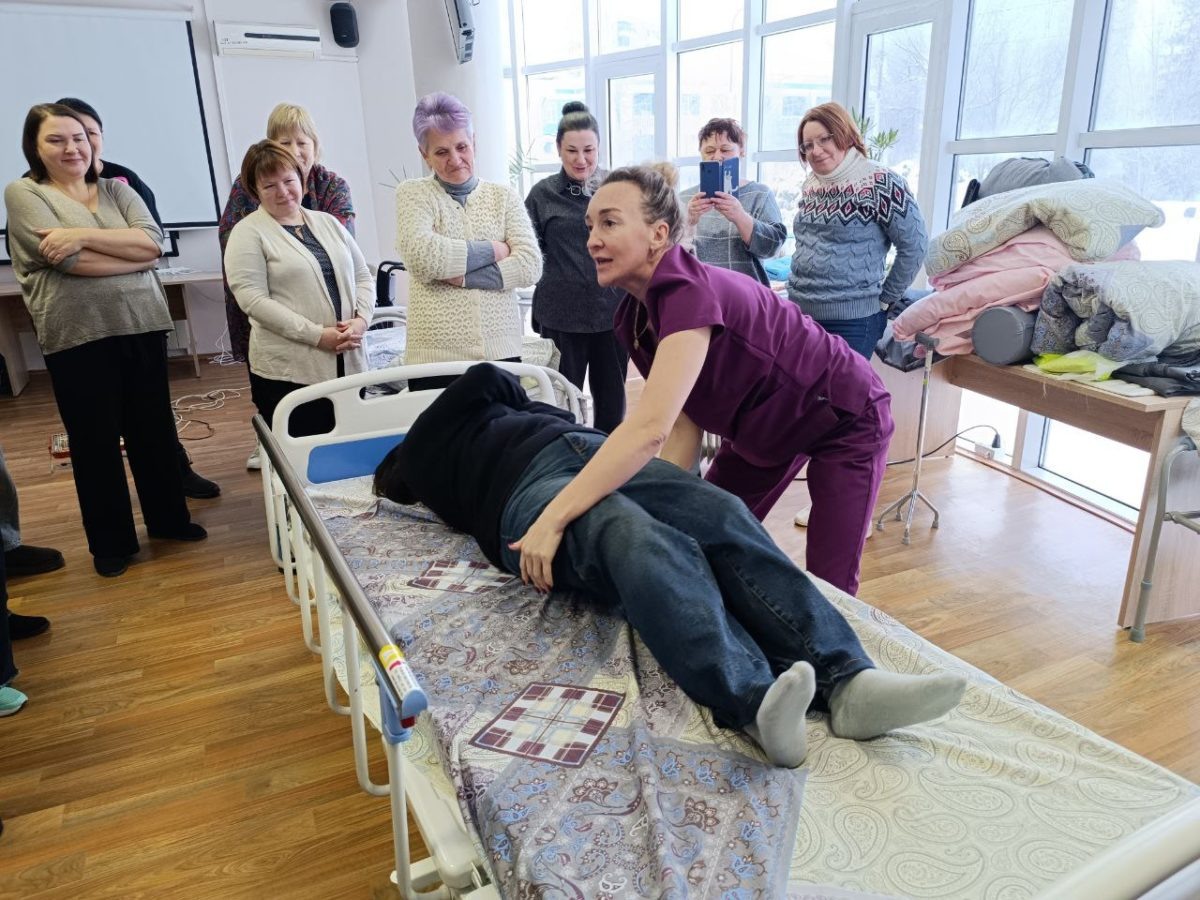 Мобильность, гигиена, позиционирование, питание стали темами выездного тренинга, организованного фондом «Старость в радость» в Волгограде. Тренеры городских и областных школ ухода из центров социального обслуживания населения, преподаватели учебного центра Центрального ЦСОН, сотрудники комитета социальной защиты населения, организаторы ухода из НКО стали участниками нашей двухдневной программы. Были среди них как уже опытные специалисты, так и те, кто только начинает узнавать тонкости этого важного и ответственного дела. «Самое главное в уходе за пожилыми и людьми с инвалидностью — помнить об их уязвимости и зависимости от помощи», — говорит специалист фонда Оксана Авдеева. То, что с легкостью сделает здоровый человек, ослабленный даже не всегда сможет озвучить. Поэтому важно не просто выполнять те или иные действия, а понимать, если хотите, чувствовать, пора ли изменить положение тела, дать воды или размять руки. А уж манипуляции в кровати, когда требуется поменять белье, подгузник, п