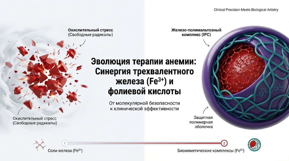 Выбор в пользу Fe3+ в сочетании с фолиевой кислотой знаменует переход от агрессивного восполнения к физиологической коррекции дефицита. Это стратегическое решение, снижающее риск генотоксичности и повышающее приверженность терапии.