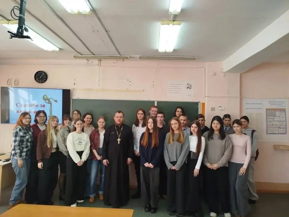 12 февраля 2026 года в МБОУ «СОШ №26» города Междуреченска состоялись духовно-нравственные занятия для учащихся 8–10 классов на тему: «Разговор о духовном». Со школьниками встретился преподаватель Кузбасской православной духовной семинарии, кандидат богословия иерей Роман Алексеевский. За один было проведено семь отдельных занятий: для пяти восьмых классов и двух десятых классов. В ходе встреч были рассмотрены вопросы: значение и духовный смысл праздника Масленицы; учение о трёх райских заповедях; почему путь к Богу начинается с прощения; что такое Великий пост; зачем человеку необходим Великий пост. Во время общения с учащимися затрагивались вопросы духовных ценностей, нравственного выбора, ответственности человека перед Богом и обществом, а также значение веры в жизни современного человека.