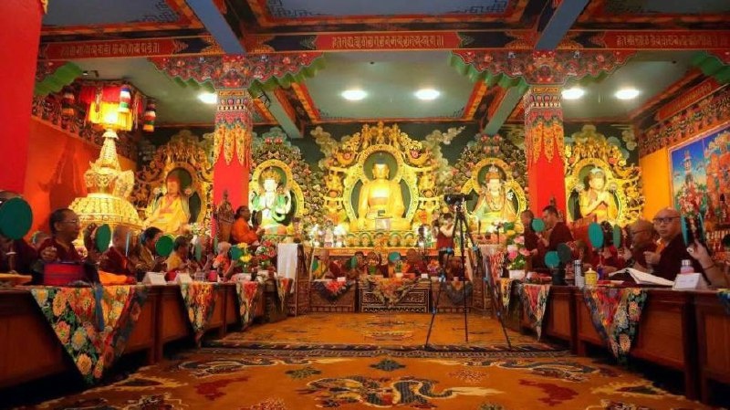 (ньингма). На фото алтарь храма и крупный план статуй. Здесь на алтаре мирно соседствуют скульптурные изображения Ньямме Шераба Гьялцена Ринпоче, Долпопы Шераба Гьялцена, Будды Шакьмуни, Гуру Ринпоче и Авалокитешвары. А в храме проводятся как буддийские, так и бонские ритуалы. Средства на храм собирались с 2018 года, а его проект курировался двумя важными учителями нашего времени Комангом Чоктулом Ринпоче (учеником в Лачунга Ринпоче (ньингма)) и Менри Понлобом Янгтоном Тринлеем Ньимой Ринпоче - главным наставником монастыря Менри традиции Юндрунг Бон.