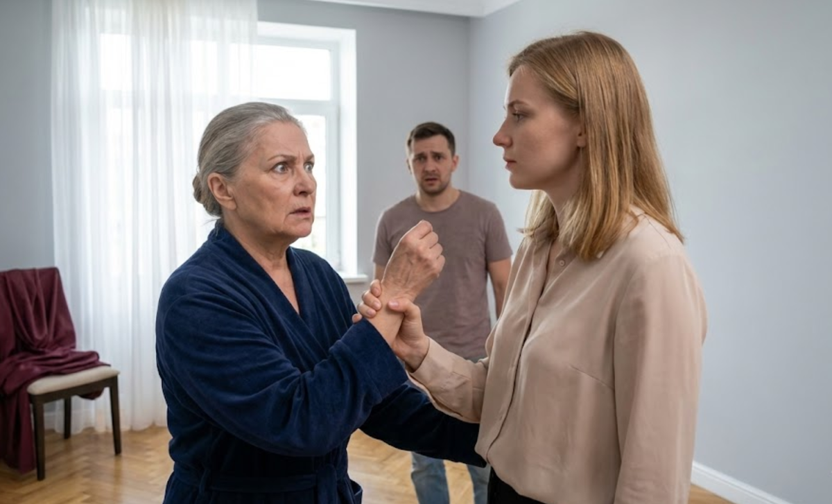 Она посмотрела на свою руку, потом на сына, который молча наблюдал за сценой, и на невестку. Её губы едва заметно дрогнули. Она хотела сказать что-то едкое, чтобы вернуть себе привычную защиту, но не смогла.