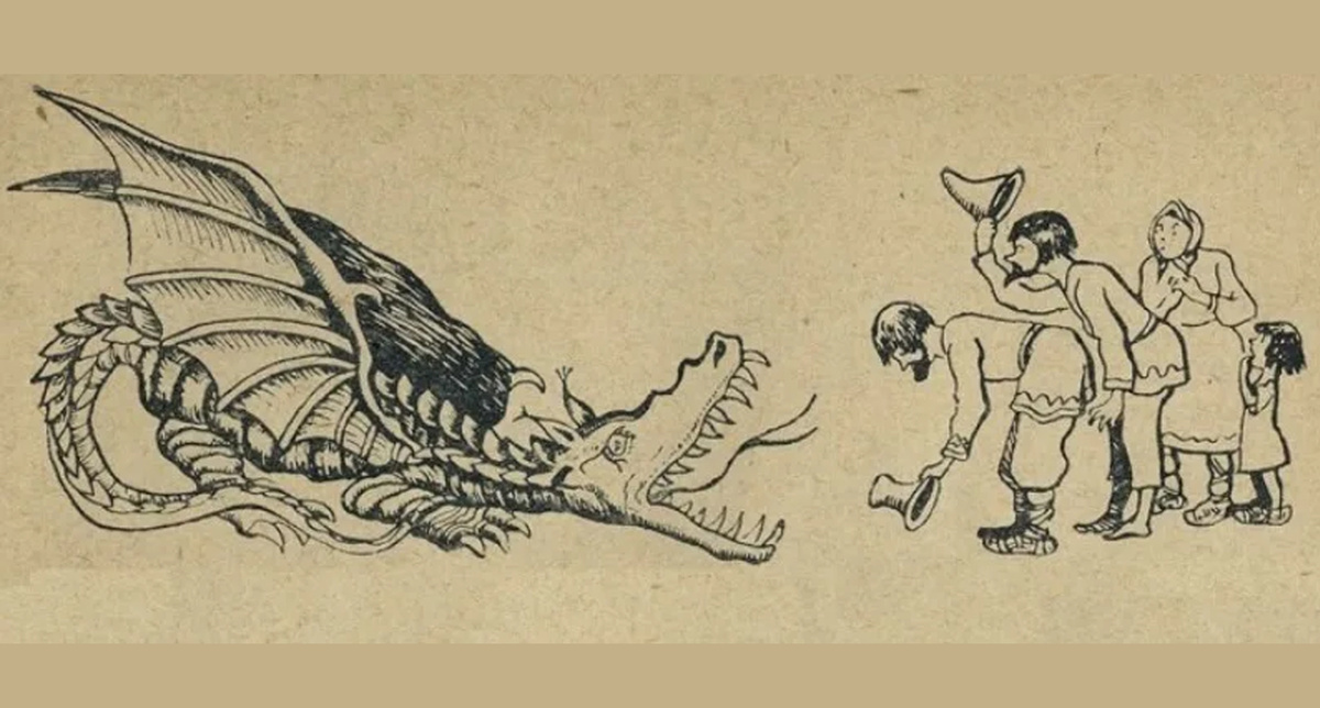 В одной из местных публикаций XX века рассказывается о цитате из старинной рукописи, где описывается «змий, потрясший людей своей отвратительной вонью», и что его поместили в бочку с вином согласно указу Петра I о сборе необычных находок. И такой указ Петра I о формировании Кунсткамеры реально существовал — собрания редкостей и «дикости» со всего мира, куда действительно отправляли интересные находки, странности природы, редкие экземпляры животных, минералов и т. д. Это была часть научной деятельности нового российского времени.